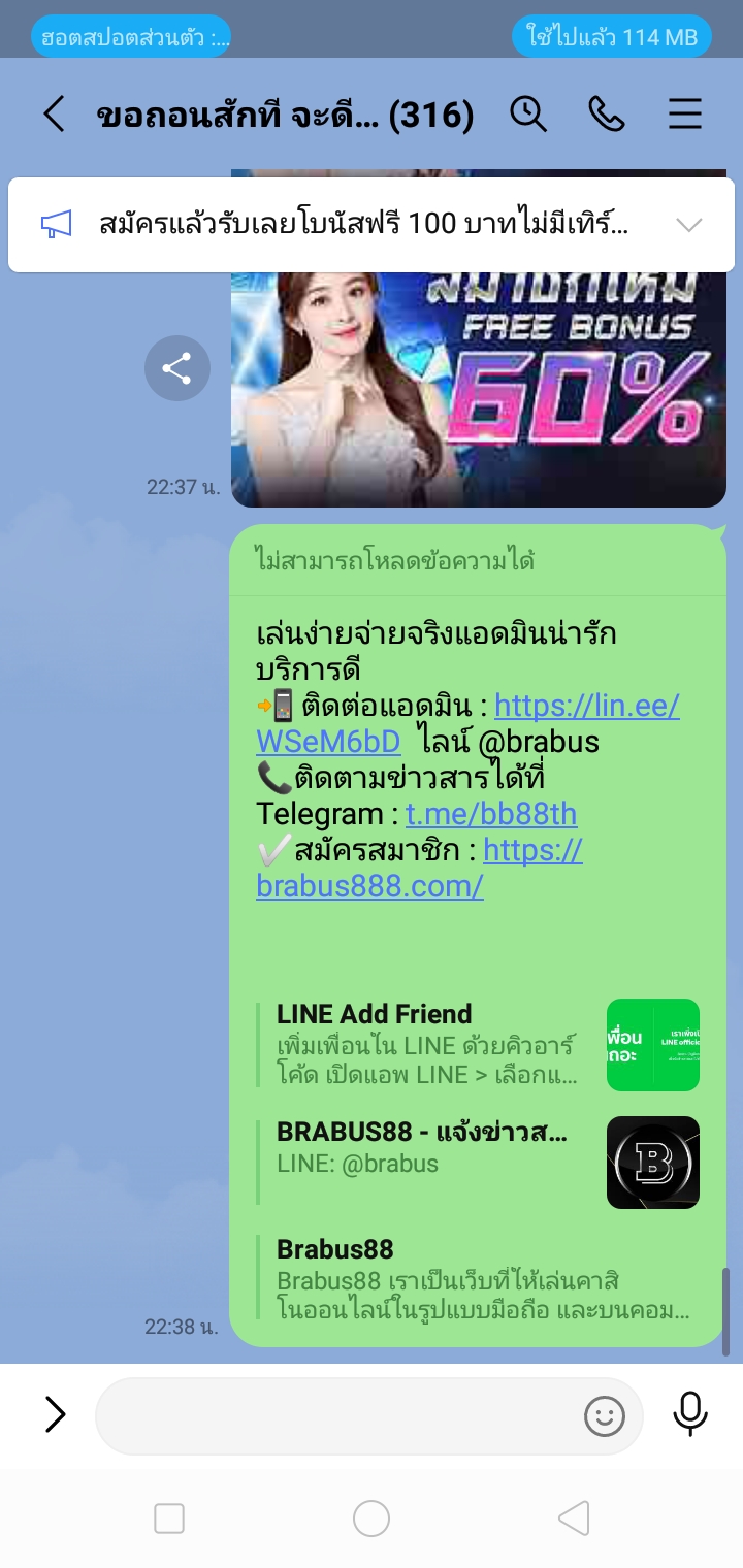 สมาชิกหมายเลข : 064-248-xxxxIP : 223.24.160.51 26-12-2024 23:25 น.แอดมินน่ารัก เป็นกันเองบริการดีเยี่ยมตอบเร็วพร้อมบริการ24ชั่วโมง📲 ติดต่อแอดมิน ไลน์ @brabus